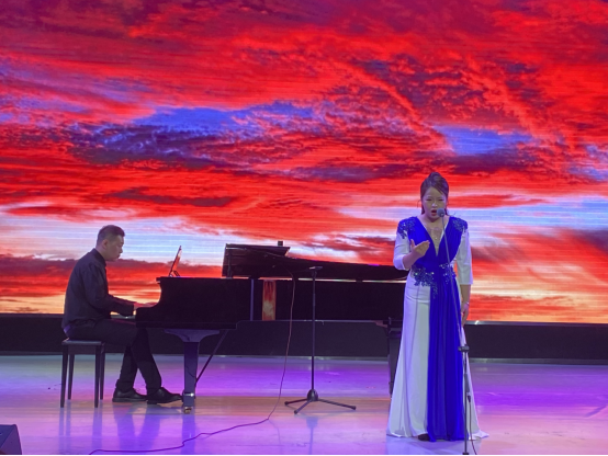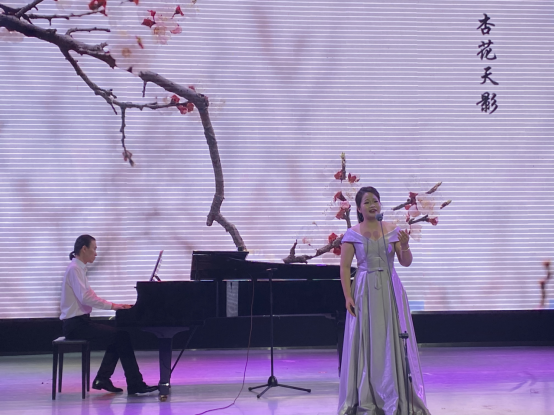整场音乐会曲目丰富多彩,既有《杏花天影》《卜算子·咏梅》等清新高雅的古诗词艺术歌曲,又有充满正能量的《五洲人民齐欢笑》《恨似高山仇似海》等歌剧经典唱段以及风格迥异的《催咚催》《小河淌水》等中国民歌和饱含深情的《我身后的你》等创作歌曲。