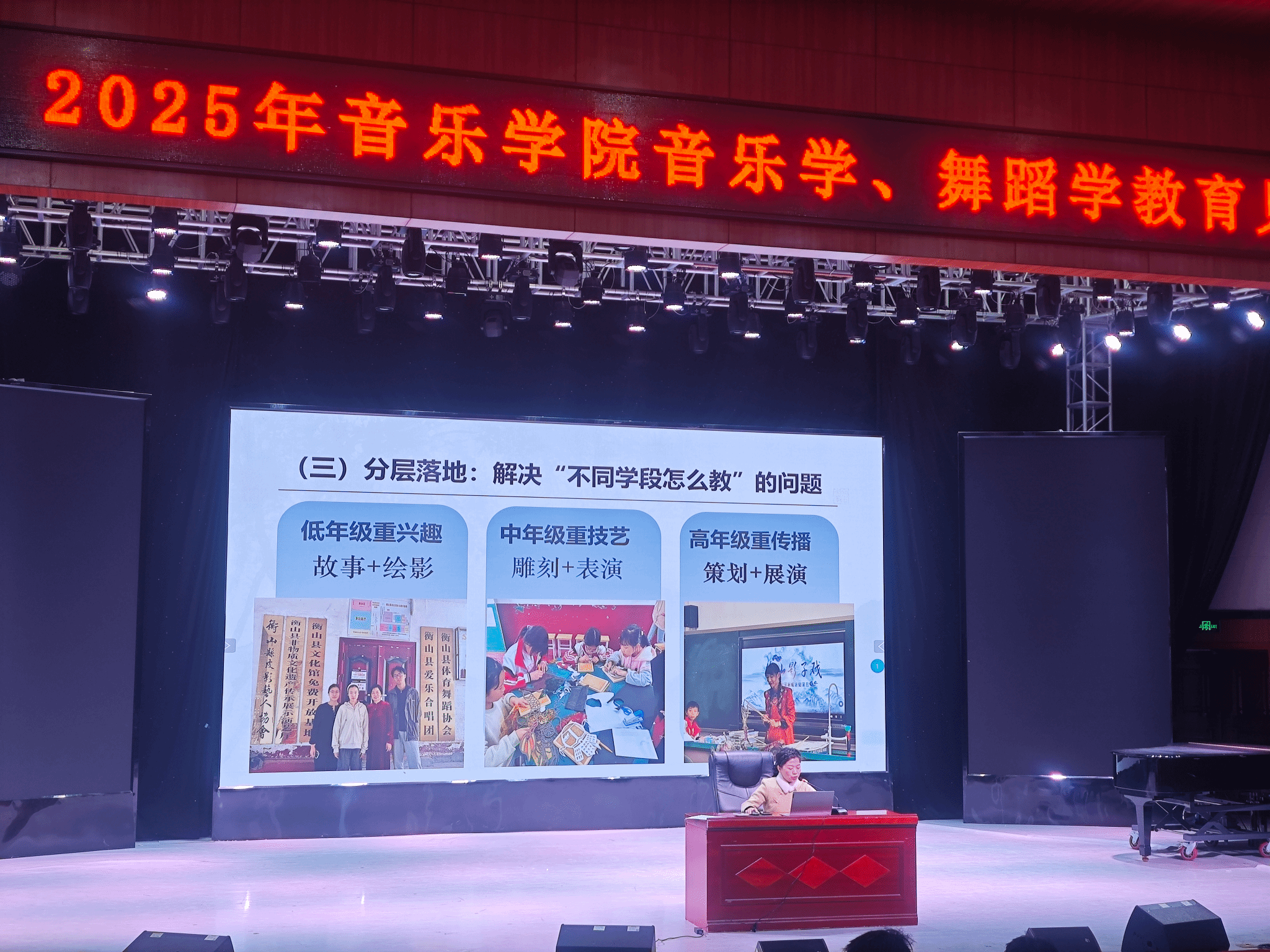 近日,公司特别邀请了衡山县福田乡中心公司的曹伟玲老师为音乐学、舞蹈学师范生以及音乐教育方向的研究生举办了一场题为《衡山皮影戏校本研修实践与艺术教育启示》的讲座,曹老师所在公司的教师团队将非遗皮影戏引入校园,其富有成效的探索与实践获中央电视台等多家权威媒体的报道,已成为非遗融合教育的示范性案例。