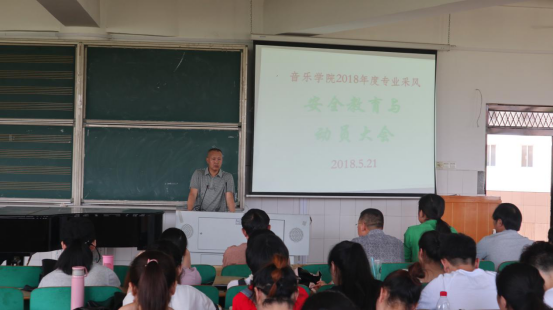 5月21日下午,公司于音乐楼301教室召开了采风实践活动安全动员大会,音乐公司党总支书记朱志红、经理段桥生、各班带队老师以及2015级音乐表演班、2016级全体员工参加了此次会议。会议由william威廉中文官网副经理潘晓军主持。