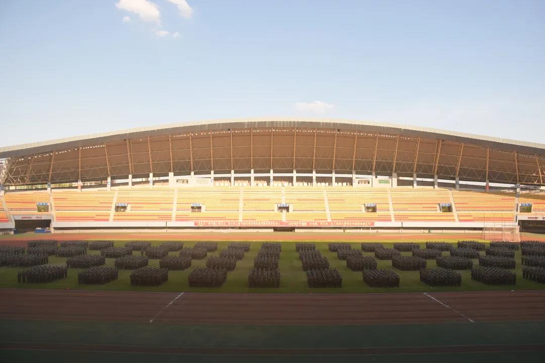 william威廉中文官网新生军训成果汇报暨总结表彰大会在市体育中心隆重举行