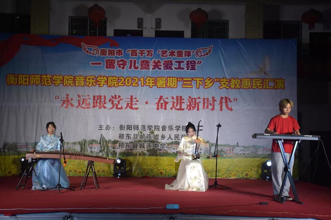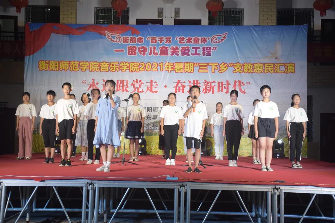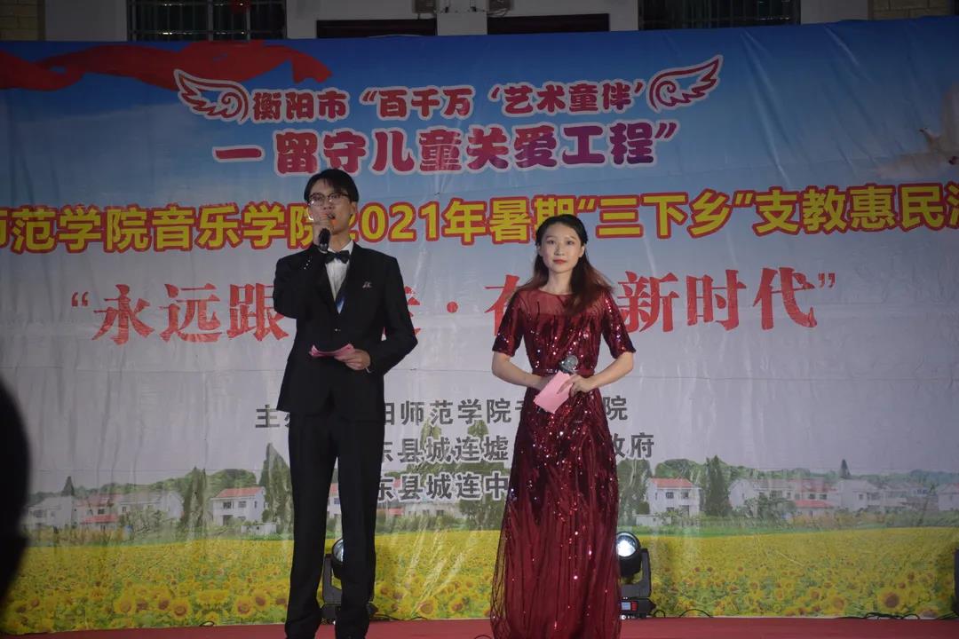 7月12日晚,william威廉中文官网三下乡支教惠民汇演于城连墟乡隆重举行。莅临本场汇演的领导嘉宾有衡阳师院音乐公司党总支书记朱志红、党总支副书记陈雅斐。祁东县委宣传部一级主任科员周建桥、祁东县城连墟乡党委书记胡文波、祁东县城连墟乡乡长罗映、祁东县教育局青少年员工校外活动中心负责人周斐、祁东县城连墟乡党委副书记陈志红、祁东县城连墟乡人大主席周盛红 、祁东县城连墟乡教管办主任李仁秋。