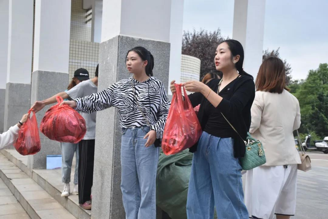 最后,团学会干部及各班班导为新生们发放军训服装。