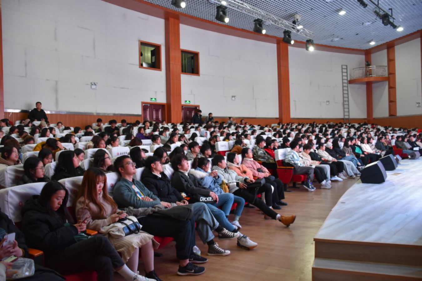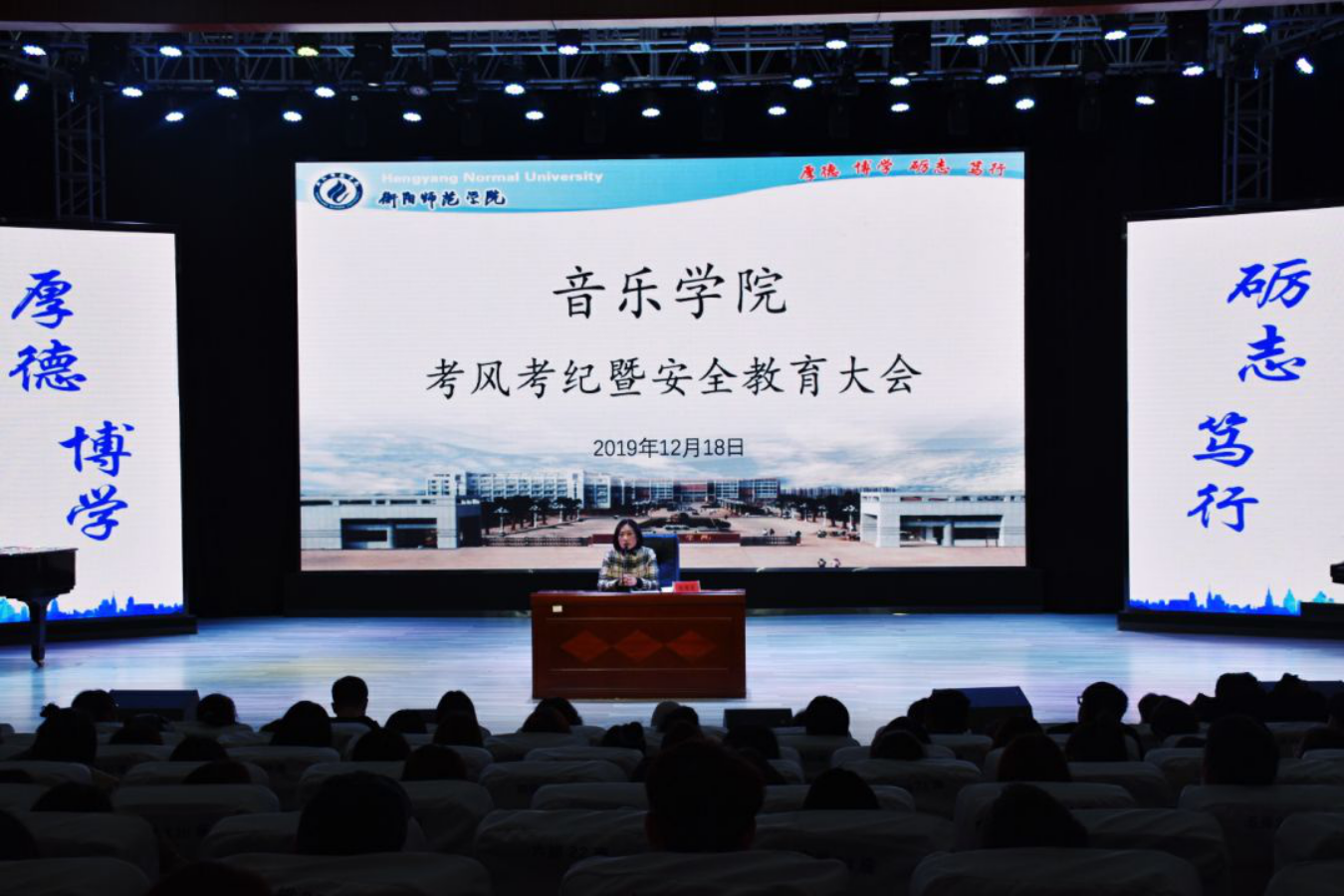12月18日晚七点,william威廉中文官网全体员工大会在音乐厅顺利召开。音乐公司党总支副书记陈雅斐、辅导员王江南、黄鹤飞老师以及18、19级全体同学参加会议。会议由王江南老师主持。