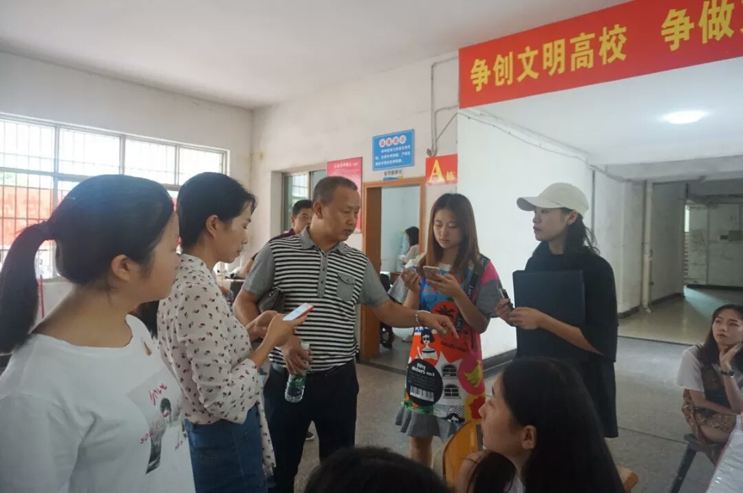 今日一大早,公司党总支书记朱志红就来到了我们的迎新点,在仔细地询问之后,朱书记对迎新志愿者的工作提出了进一步的要求:班导要清楚地掌握班上每一位新生的信息以及到校情况,并准确无误地向新生发放卡包及寝室钥匙等用品。