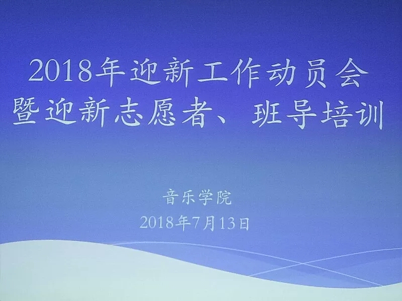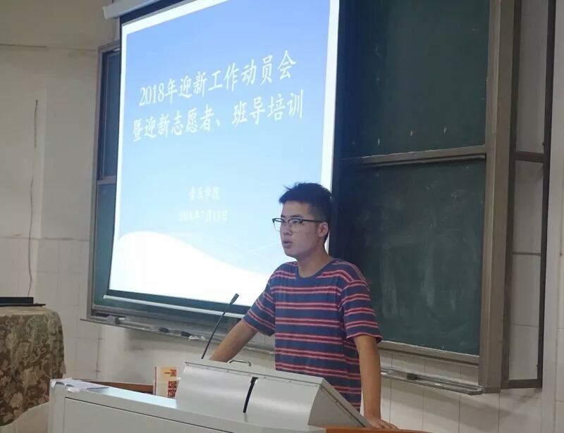 为确保2018年迎新工作的顺利完成,7月13日晚,2018年迎新工作动员会暨迎新志愿者、班导培训于音乐楼202教室顺利开展。参与本次会议的有辅导员王江南老师、2018年迎新志愿者以及2018级新生班导,本次会议由分团委员工分会主席周祎格主持,分团委副书记张妍担任主讲。