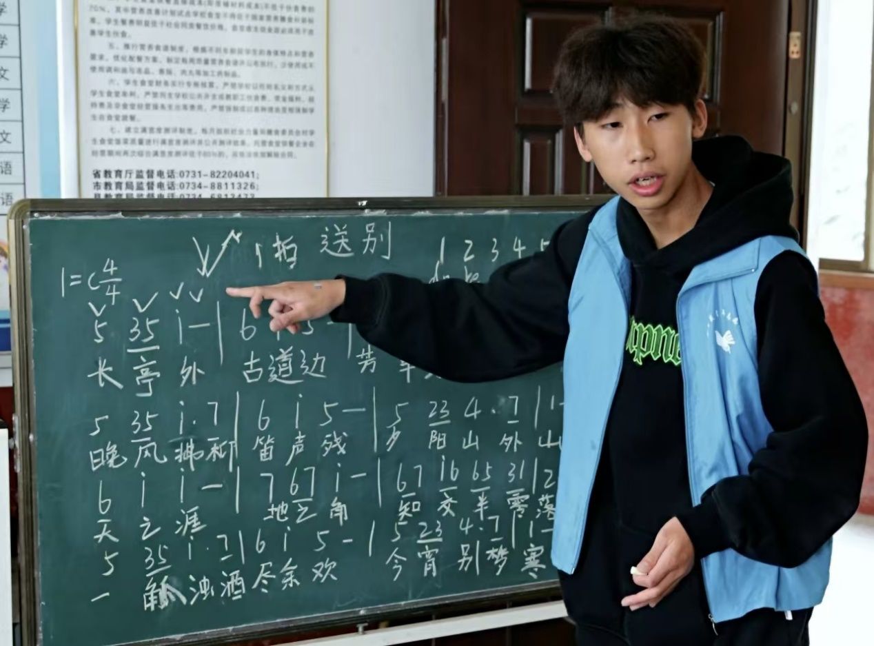 课堂之上,支教老师们以爱为弦,以责为弓,将音乐的美妙旋律播撒进每一个孩子的心田。没有完备的乐器,便以清嗓吟唱、以手拍桌案,让节奏在简陋的教室里跳跃。从基本的音符认知到悠扬歌曲的演绎,从简单的节奏把握到复杂乐曲的合奏,让孩子们在充满趣味的互动中感受音乐的魅力。