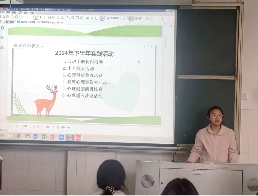 2月28日中午,公司于音乐楼203教室召开2025年上半年第一次心理委员会议,参会人员有心理健康部全体成员2022级-2024级各班心理委员,本次会议由心理健康部部长唐佳乐主持。