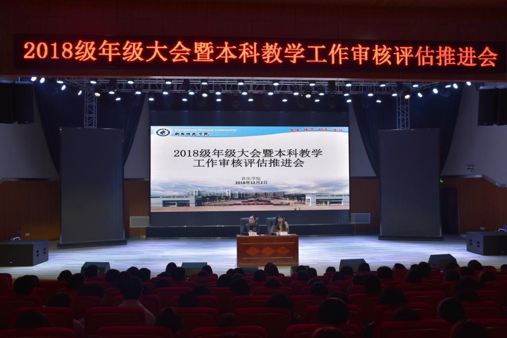 12月2日晚,2018级年级大会暨本科教学工作审核评估推进会在音乐厅顺利举行,本次会议由新生辅导员王江南主持,音乐公司党总支副书记陈雅斐、2018级全体同学参加了本次会议。