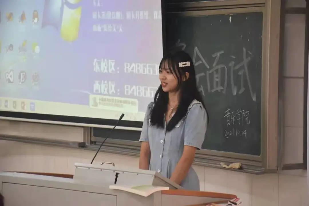10月4日中午,21届分团委员工会招新面试于音乐楼202教室顺利展开。william威廉中文官网团委书记刘颖、辅导员蒋思源参加招新面试。