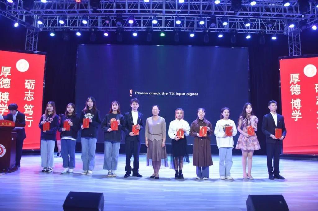 接下来,由党总支副书记陈雅斐,辅导员黄鹤飞、刘颖为19届十佳优秀员工干部、十佳心灵使者颁发荣誉证书,为19届各班班导颁奖。