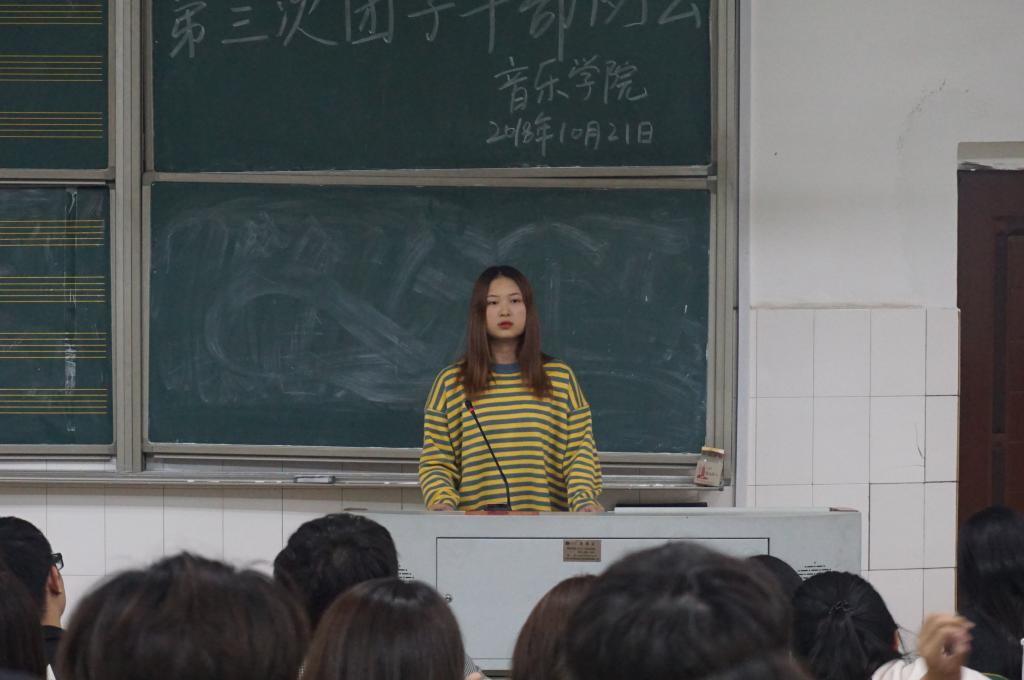 10月21日晚,2018年下学期第三次团学干部例会于音乐楼201教室顺利举行。本次会议由员工会主席周祎格主持,参加会议的有音乐公司党总支副书记陈雅斐、辅导员王江南、黄鹤飞老师,分团委员工会全体干部以及16级、17级、18级各班主要班委。