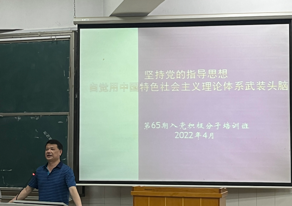 课上,彭正首先告诉同学们,所谓政党的指导思想,是指一个政党用以指导自己一切活动的理论体系,是政党的思想建设组织建设和作风建设的理论基础。随后,彭正重点强调了中国共产党的指导思想是以马克思列宁主义、毛泽东思想、邓小平理论、“三个代表”重要思想、科学发展观和习近平新时代中国特色社会主义思想作为自己的行动指南。此外,他还向同学们详细介绍了马克思主义、列宁主义、毛泽东思想,重点提到毛泽东思想的三大灵魂是:实事求是、群众路线和独立自主。紧接着,彭正详细介绍了中国特色社会主义理论体系,介绍了“三个代表”重要思想,并强调“三个代表”重要思想不仅仅是三句话,还是一个系统的科学的内容丰富的理论体系。最后,彭正告诉同学们,思想是行动的先导,理论是实践的指南,每个党员和志愿入党的同志,都要认真学习、深刻领会,用理论来做行动的指路灯。