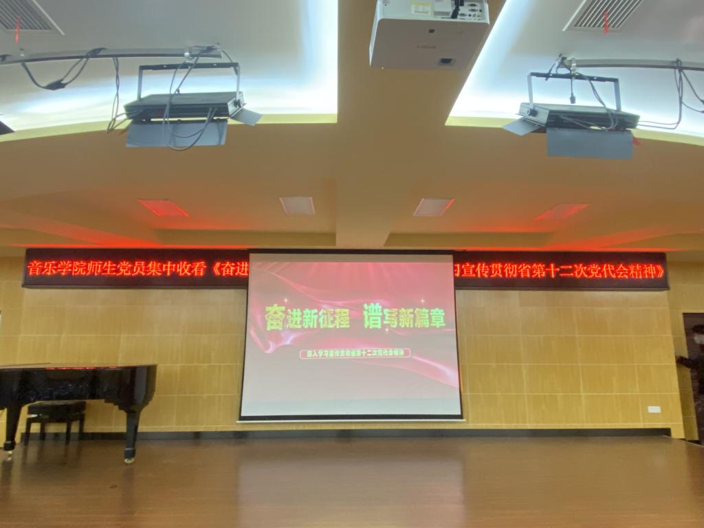 2021年12月27日上午9点,公司党总支组织全体师生党员在音乐楼401教室集中收看《奋进新征程 谱写新篇章——深入学习宣传贯彻省第十二次党代会精神》专题电视教育片。