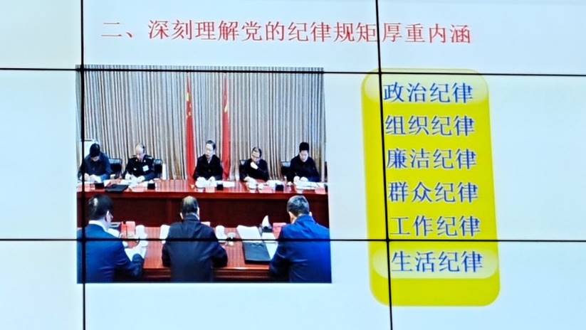 在课上,陈书记从深刻认识守纪律的重要性、党的纪律规矩厚重内涵、模范遵守党的纪律三个方面进行了讲解。
