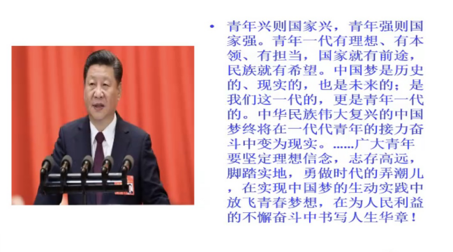 培训的最后,陈书记引用了习总书记说过的话:青年兴则国家兴,青年强则国家强。青年一代有本领,有理想。国家才有前途,民族才会有希望!而中国梦将会在一代代青年们的奋斗中变为现实!我们要坚定自己的理想信念,为实现中国梦贡献出自己的一份力!