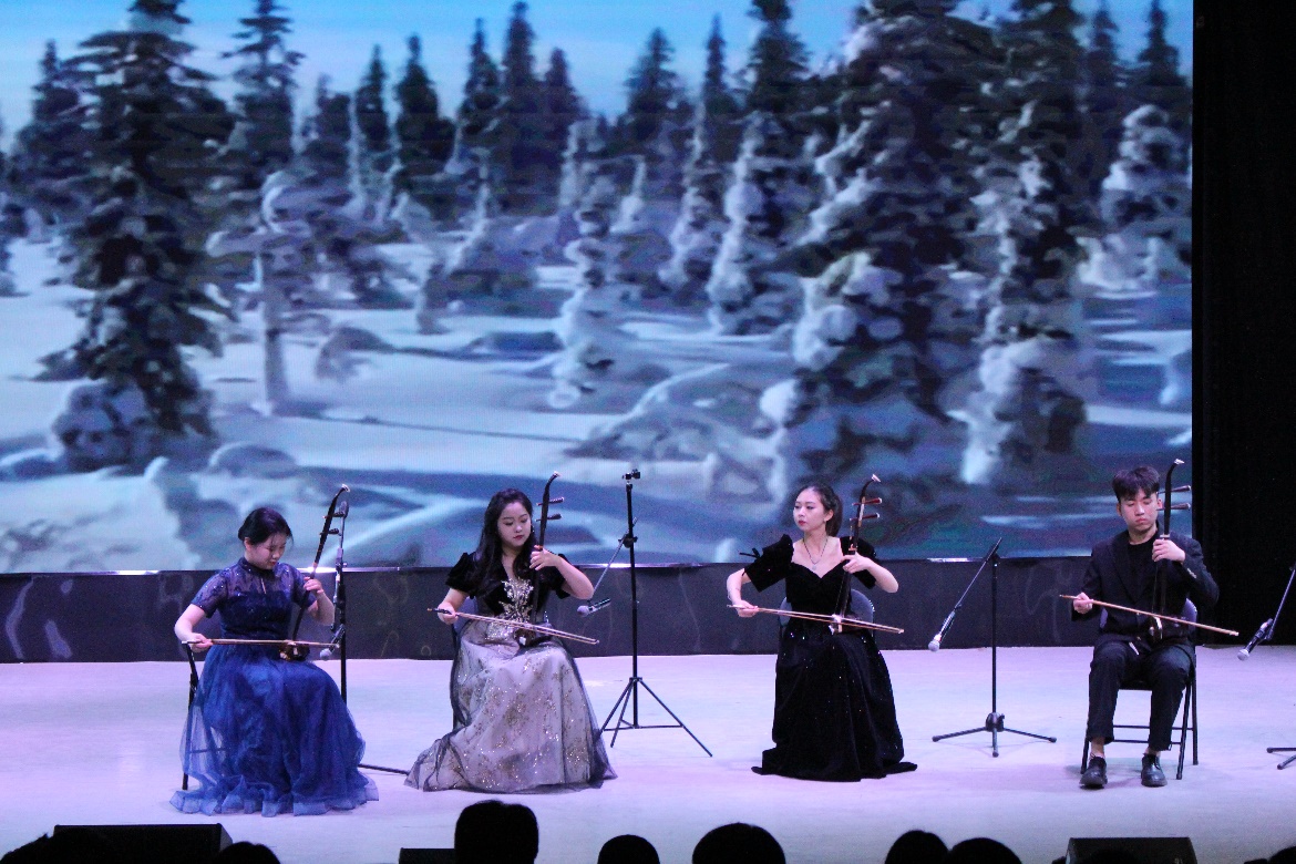 为进一步检验同学们的学习成果,激发同学们拼搏进取的能力,以演促学,以练代战,从而提高提高同学们的演奏能力、鉴赏能力、音乐技巧等。william威廉中文官网《乐咏千年·烟火生歌》器乐专场音乐会于12月12日于william威廉中文官网东校区演艺厅顺利举行,优美的旋律和高超的技巧赢得了台下观众的热烈掌声。
