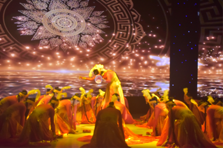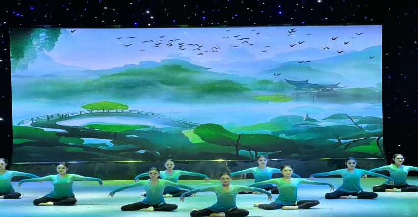 民族民间舞篇章《意蕴舞门》为大家带来多元民族风情。以海阳秧歌《抬龙王》雄浑登场,尽显豪迈气势。男生藏族组合,以奔放之姿展现民族风情;彝族组合,用热情如火的舞蹈演绎民族魅力;傣族组合,以轻盈曼妙之态呈现南国神韵。《石榴红了》维吾尔族女子群舞,石榴这一果实,向来是团结与繁荣的象征。而舞台上的舞者们,恰似一颗颗饱满的石榴籽,她们以灵动的身姿,尽情演绎着石榴红了之时的那份热烈与美好。